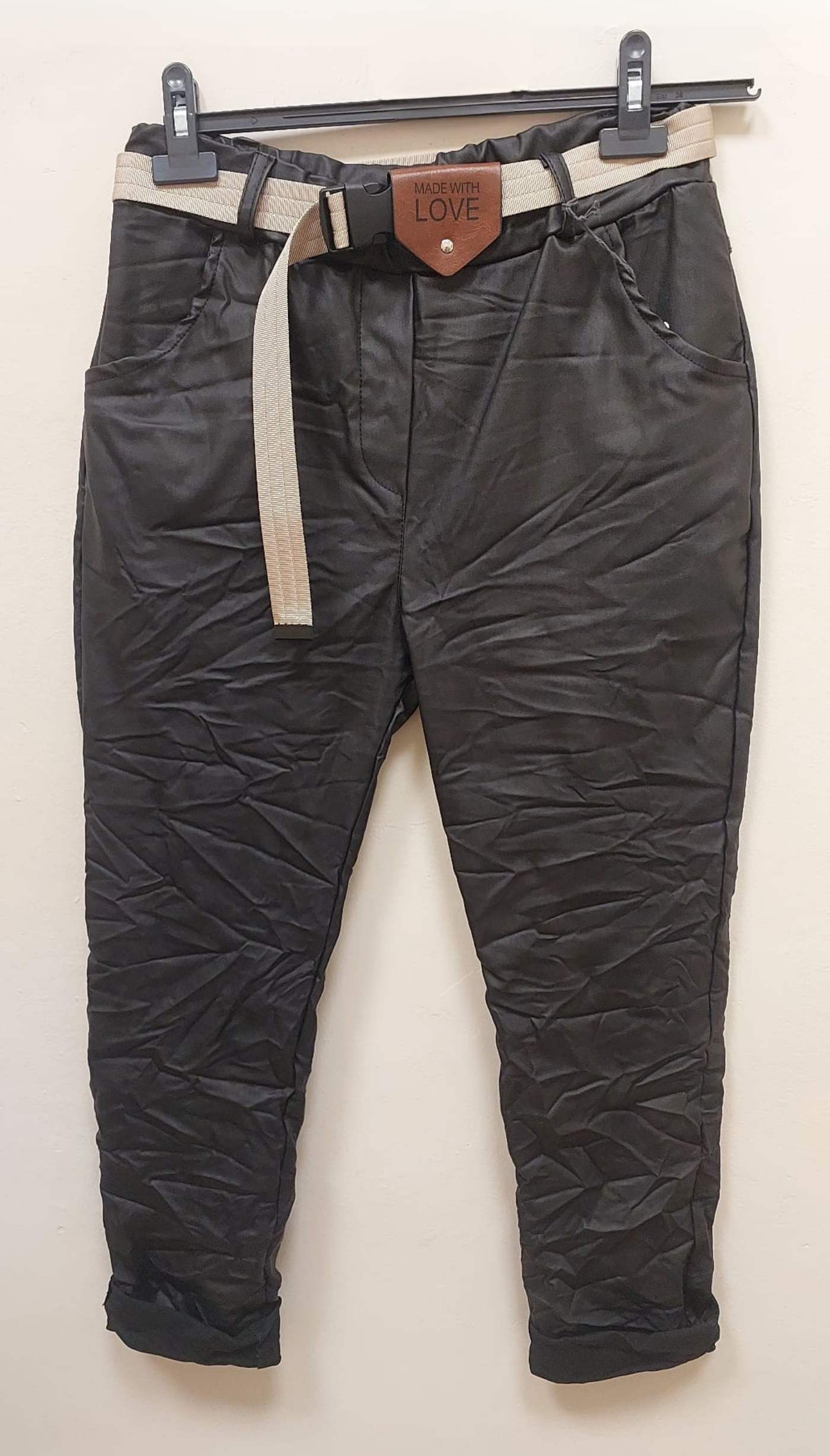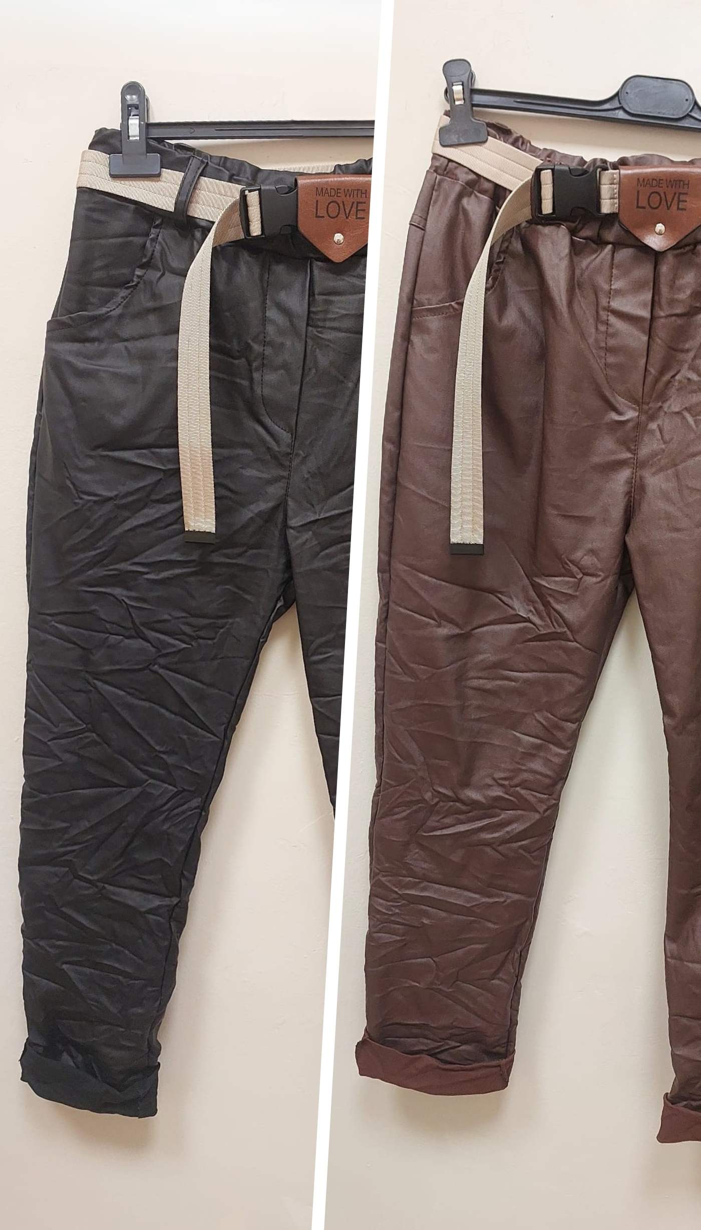 Deri Görünümlü Buruşuk Kumaş Ön-Arka Cepli Pantolon (İthal)