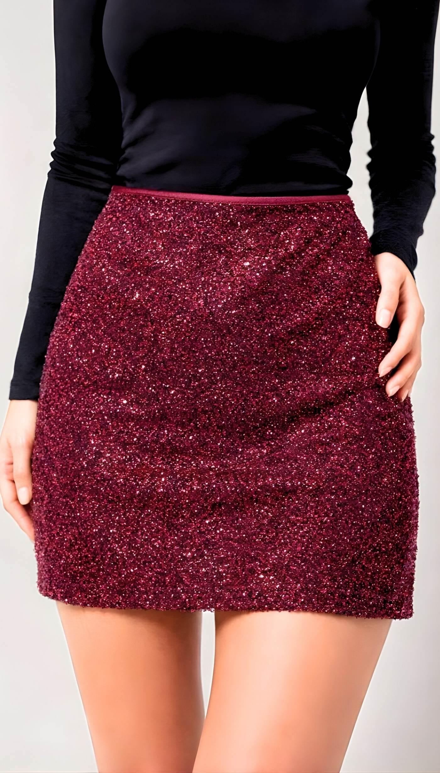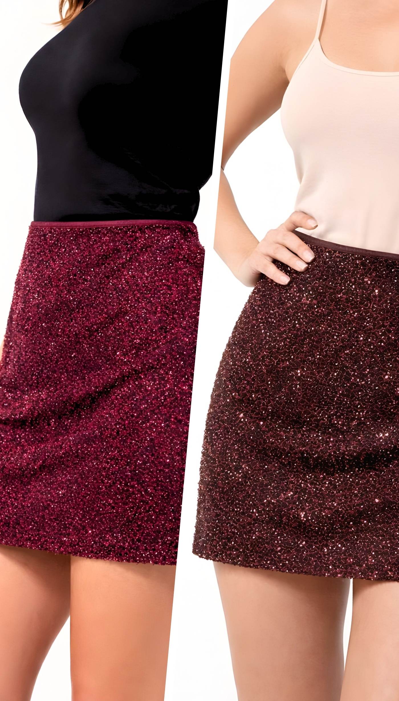 Simli, Astarlı, Cepsiz, Beli Lastikli Mini Etek